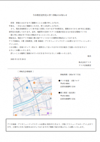 いつもアツタ音楽教室をご利用いただきありがとうございます。